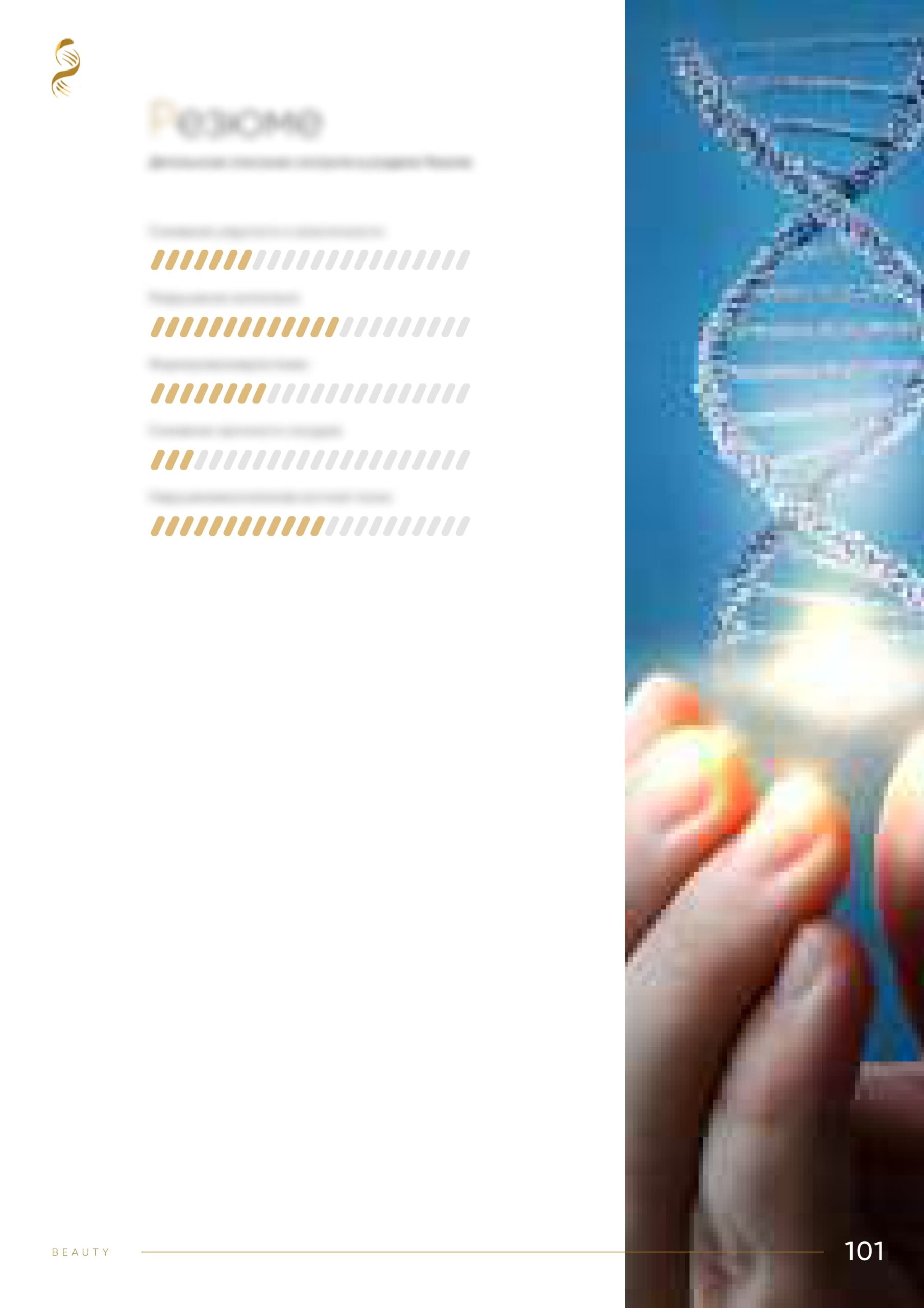 Лаборатория имеет передовые технологии и долгосрочные методики и протоколы для теста ДНК на красоту, а главной её особенностью есть наличие специалистов мирового класса с многолетним опытом в исследованиях, они и являются основным фактором лидерства лаборатории в проведении тестов ДНК в России.